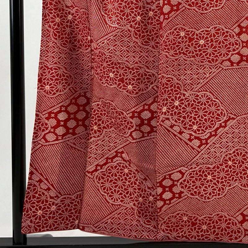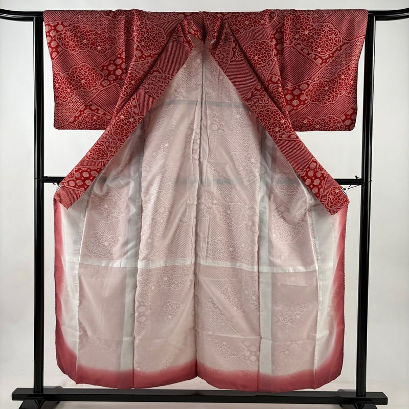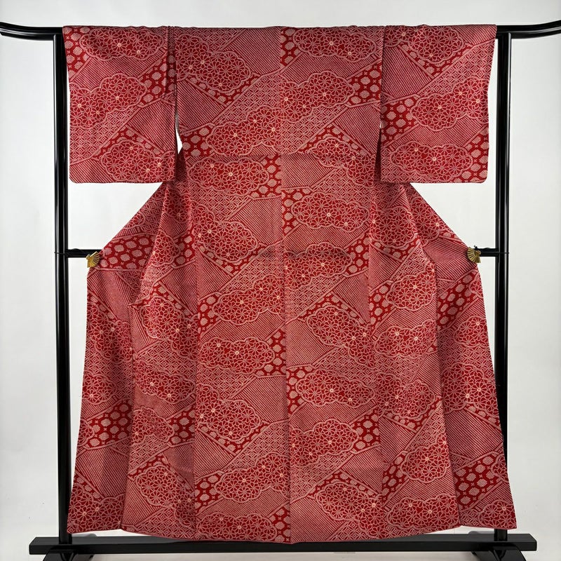 【小紋】 赤系 赤 優品 B 約150cm~約159cm 裄丈63cm-64cm (S)size 袖丈47cm -3980 二万以下
