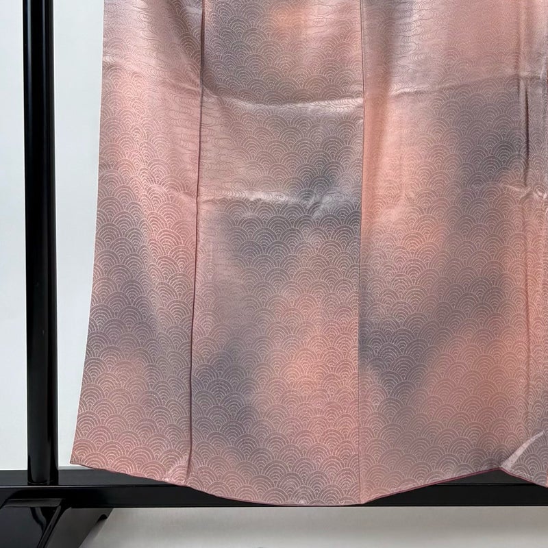 【着物ランク】優品 【素材】正絹 【身丈】約156cm 【裄丈】約64cm 【袖丈】約51cm 【袖幅】約32cm 【前幅】約23.5cm 【後幅】約28.5cm 【サイズ】M 【着物仕立て】袷 【着用時期】10~5月 【状態ランク】ランクB 【着物着用シーン】気軽なパーティー、観劇、食事会、正月、気軽なお茶会、街着