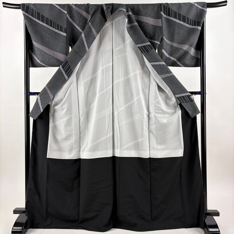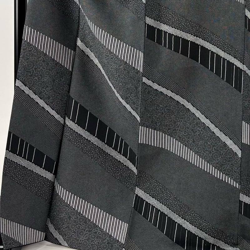 【小紋】 灰色系 黒灰 優品 A 約170cm~約179cm 裄丈67cm-68cm (L)size 袖丈49cm 4000-7980 美品 二万以下