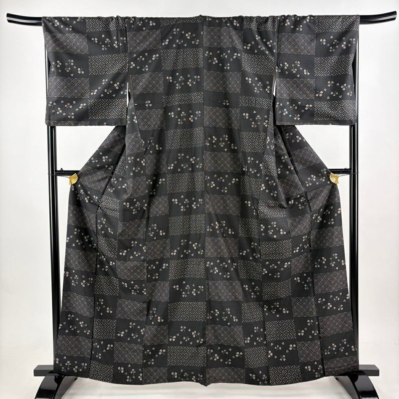 【小紋】 黒系 墨色 名品 A 約160cm~約169cm 裄丈67cm-68cm (L)size 袖丈48cm 9990-29990 美品 二万以下