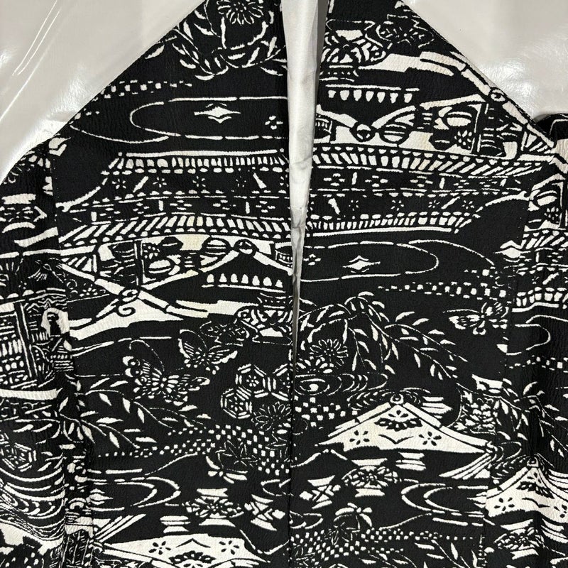 【小紋】 黒系 黒 秀品 A 約160cm~約169cm 裄丈66cm (M)size 袖丈48cm 7990-9980 美品 二万以下