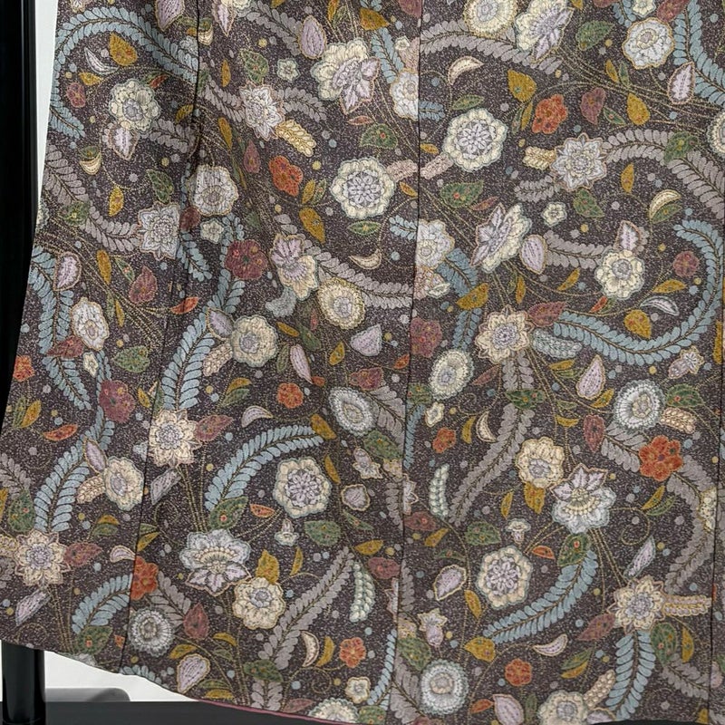 【着物ランク】秀品 【素材】正絹 【身丈】約156cm 【裄丈】約64cm 【袖丈】約48.5cm 【袖幅】約33.5cm 【前幅】約26cm 【後幅】約30.5cm 【サイズ】M 【着物仕立て】袷 【着用時期】10~5月 【状態ランク】ランクA 【着物着用シーン】気軽なパーティー、観劇、食事会、正月、気軽なお茶会、街着