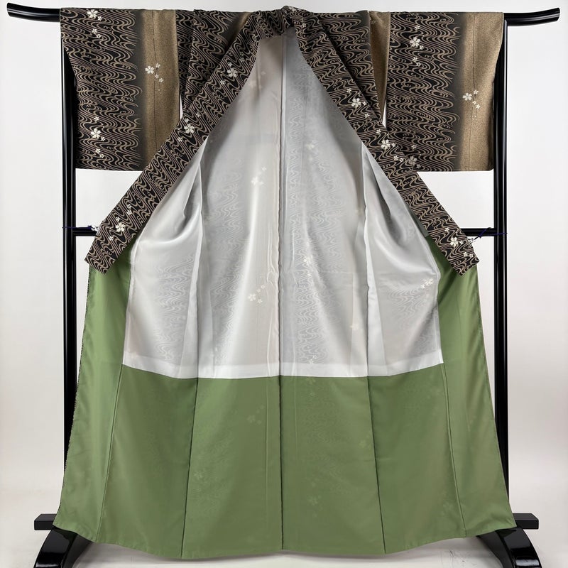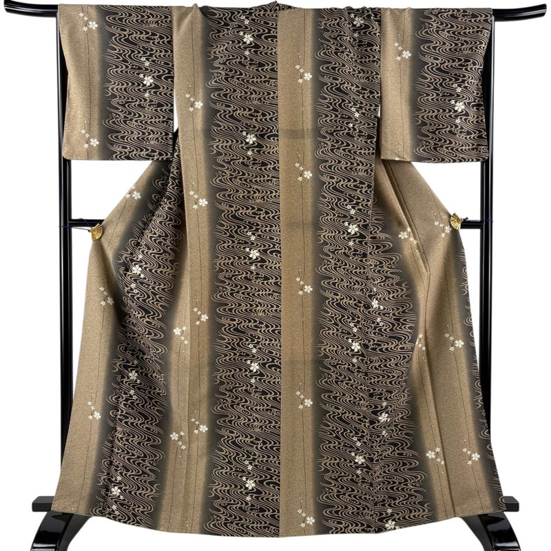 【小紋】 茶系 薄茶色 名品 A 約160cm~約169cm 裄丈67cm-68cm (L)size 袖丈49cm 9990-29990 美品 二万以下