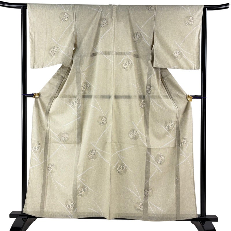 【着物ランク】秀品 【素材】化繊 【身丈】約160cm 【裄丈】約63.5cm 【袖丈】約49cm 【袖幅】約34cm 【前幅】約25cm 【後幅】約29cm 【サイズ】S 【着物仕立て】薄物 【着用時期】7~8月 【状態ランク】ランクA 【着物着用シーン】気軽なパーティー、観劇、食事会、正月、気軽なお茶会、街着