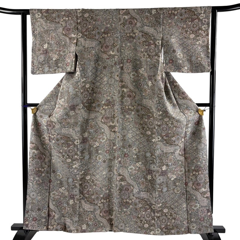 【小紋】 灰色系 灰紫 秀品 A 約160cm~約169cm 裄丈62cm以下 (S)size 袖丈46cm以下 7990-9980 美品 二万以下