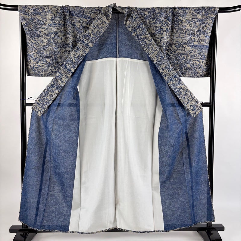 【着物ランク】名品 【素材】正絹 【身丈】約158.5cm 【裄丈】約71cm 【袖丈】約48cm 【袖幅】約35.5cm 【前幅】約29cm 【後幅】約31cm 【サイズ】L 【着物仕立て】単衣 【着用時期】6/9月 【状態ランク】ランクA 【着物着用シーン】気軽なパーティー、観劇、食事会、正月、気軽なお茶会、街着
