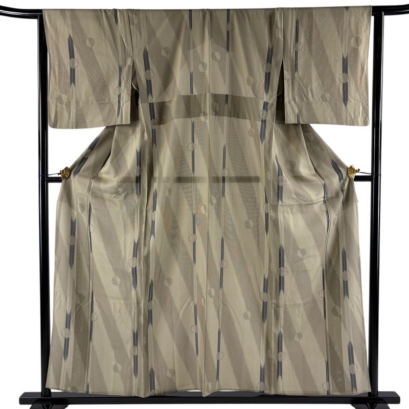 【着物ランク】名品 【素材】正絹 【身丈】約157cm 【裄丈】約66cm 【袖丈】約47.5cm 【袖幅】約33.5cm 【前幅】約24.5cm 【後幅】約30cm 【サイズ】M 【着物仕立て】薄物 【着用時期】7~8月 【状態ランク】ランクA 【着物着用シーン】気軽なパーティー、観劇、食事会、正月、気軽なお茶会、街着