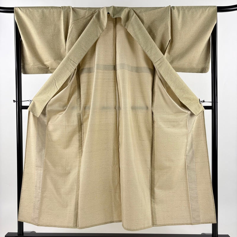 【着物ランク】名品 【素材】正絹 【身丈】約152cm 【裄丈】約67cm 【袖丈】約44.5cm 【袖幅】約35.5cm 【前幅】約27cm 【後幅】約33cm 【サイズ】M 【着物仕立て】単衣 【着用時期】6/9月 【状態ランク】ランクA 【着物着用シーン】気軽なパーティー、観劇、食事会、正月、気軽なお茶会、街着