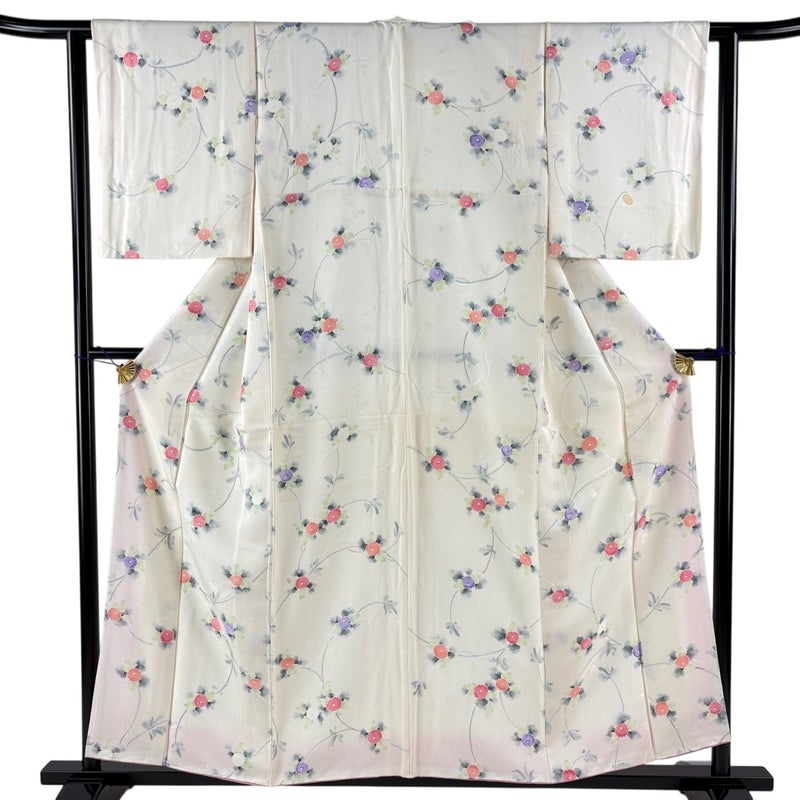 【着物ランク】秀品 【素材】正絹 【身丈】約156.5cm 【裄丈】約61.5cm 【袖丈】約48cm 【袖幅】約32.5cm 【前幅】約22.5cm 【後幅】約29.5cm 【サイズ】S 【着物仕立て】袷 【着用時期】10~5月 【状態ランク】ランクB 【着物着用シーン】気軽なパーティー、観劇、食事会、正月、気軽なお茶会、街着
