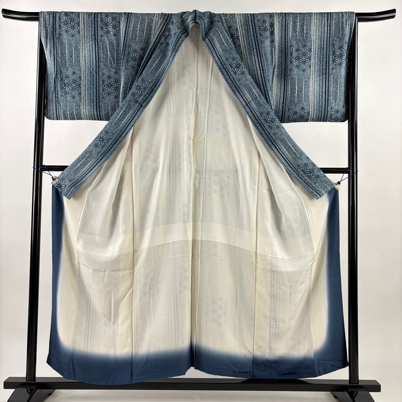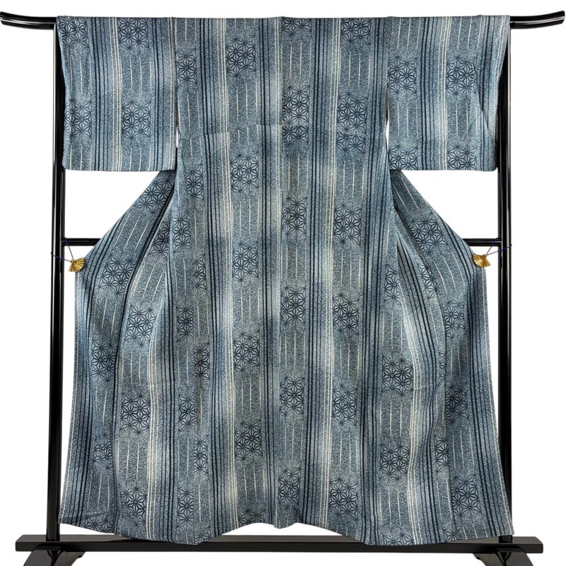 【小紋】 青系 青緑 秀品 A 約150cm~約159cm 裄丈67cm-68cm (L)size 袖丈47cm 7990-9980 美品 二万以下