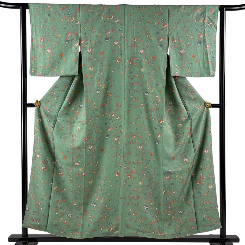 【小紋】 緑系 薄緑 秀品 B 約150cm~約159cm 裄丈62cm以下 (S)size 袖丈48cm 4000-7980 二万以下