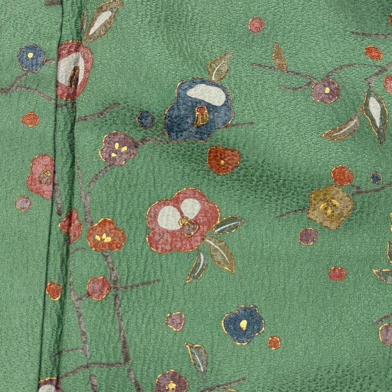 【着物ランク】秀品 【素材】正絹 【身丈】約156cm 【裄丈】約62cm 【袖丈】約48cm 【袖幅】約32.5cm 【前幅】約23.5cm 【後幅】約28.5cm 【サイズ】S 【着物仕立て】袷 【着用時期】10~5月 【状態ランク】ランクB 【着物着用シーン】気軽なパーティー、観劇、食事会、正月、気軽なお茶会、街着