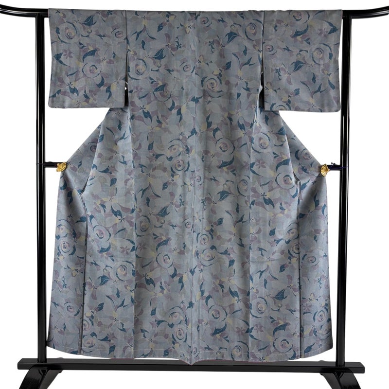 【小紋】 灰色系 青灰色 優品 A 約150cm~約159cm 裄丈62cm以下 (S)size 袖丈46cm以下 4000-7980 美品 二万以下