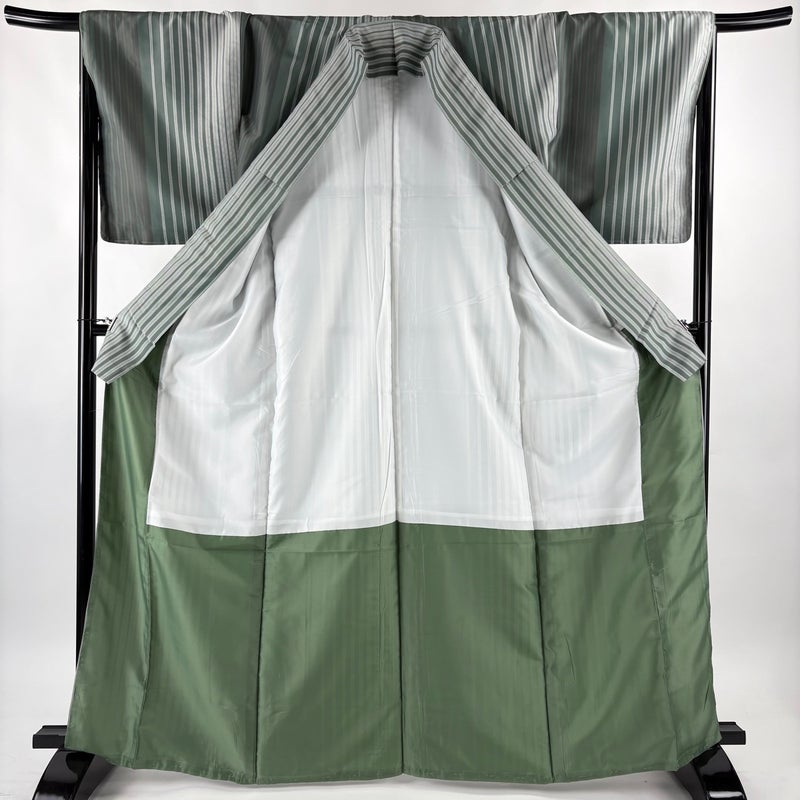 【小紋】 灰色系 灰緑 優品 A 約160cm~約169cm 裄丈67cm-68cm (L)size 袖丈49cm 4000-7980 美品 二万以下