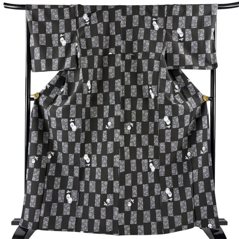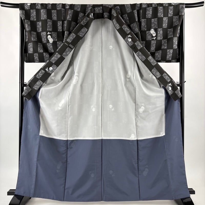 【小紋】 黒系 黒 優品 B 約160cm~約169cm 裄丈67cm-68cm (L)size 袖丈49cm -3980 二万以下