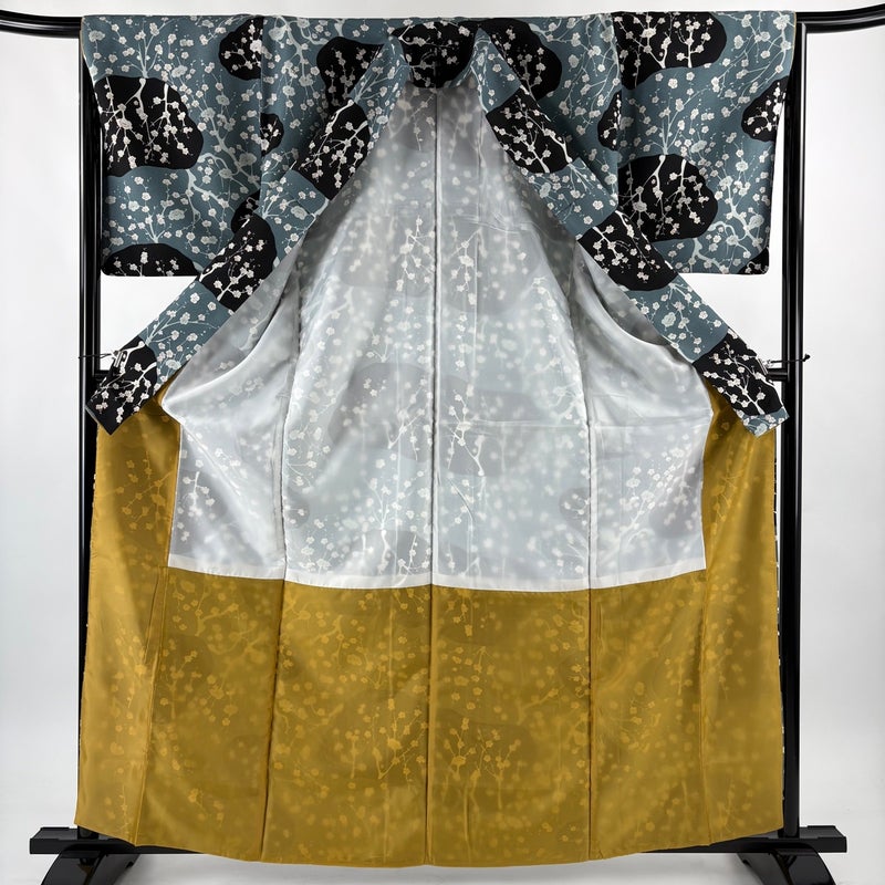 【着物ランク】優品 【素材】化繊 【身丈】約162.5cm 【裄丈】約66cm 【袖丈】約48.5cm 【袖幅】約34cm 【前幅】約22cm 【後幅】約30.5cm 【サイズ】M 【着物仕立て】袷 【着用時期】10~5月 【状態ランク】ランクA 【着物着用シーン】気軽なパーティー、観劇、食事会、正月、気軽なお茶会、街着