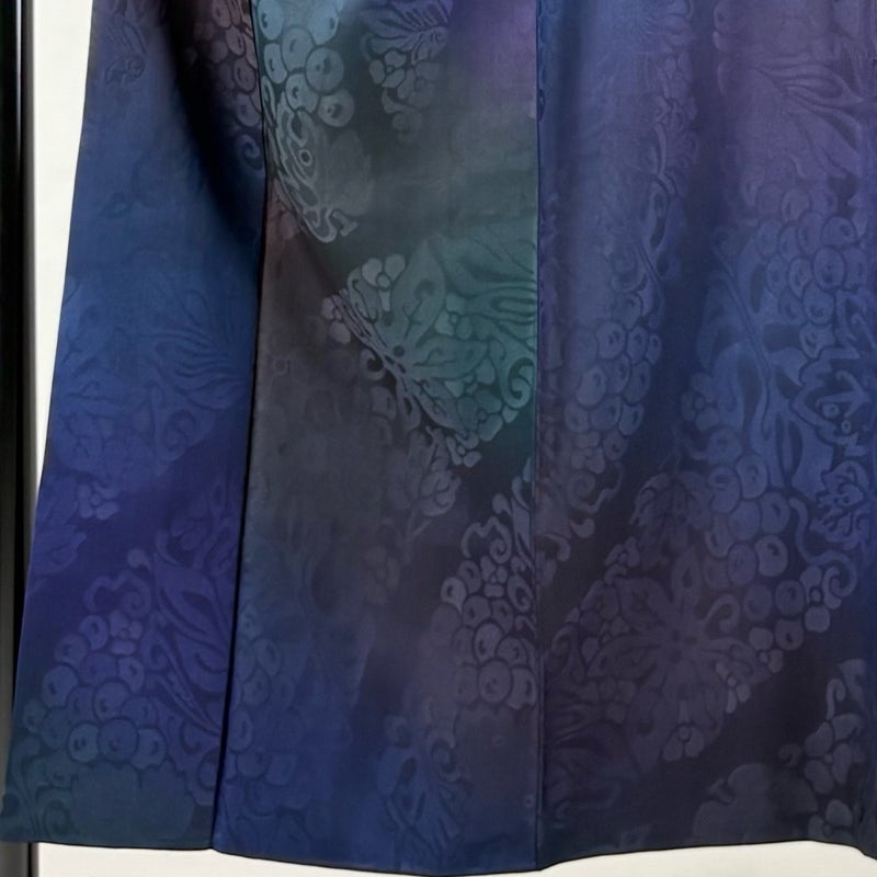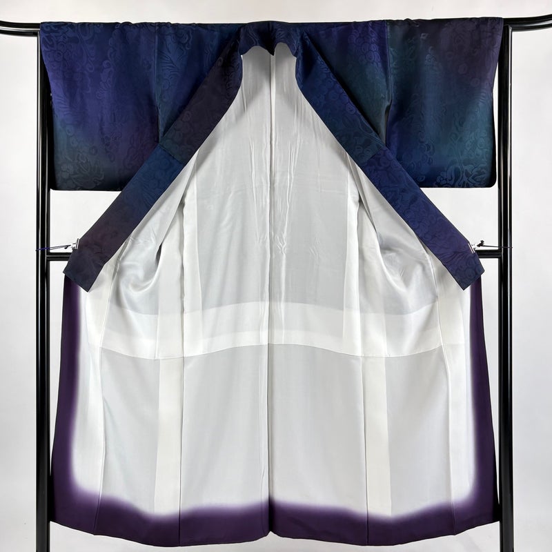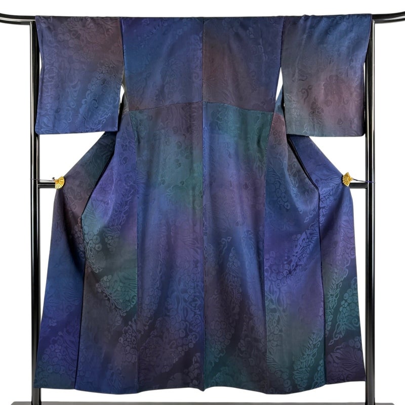 【着物ランク】名品 【素材】正絹 【身丈】約151cm 【裄丈】約66cm 【袖丈】約49cm 【袖幅】約32.5cm 【前幅】約25cm 【後幅】約30cm 【サイズ】M 【着物仕立て】袷 【着用時期】10~5月 【状態ランク】ランクA 【着物着用シーン】気軽なパーティー、観劇、食事会、正月、気軽なお茶会、街着