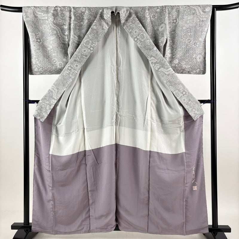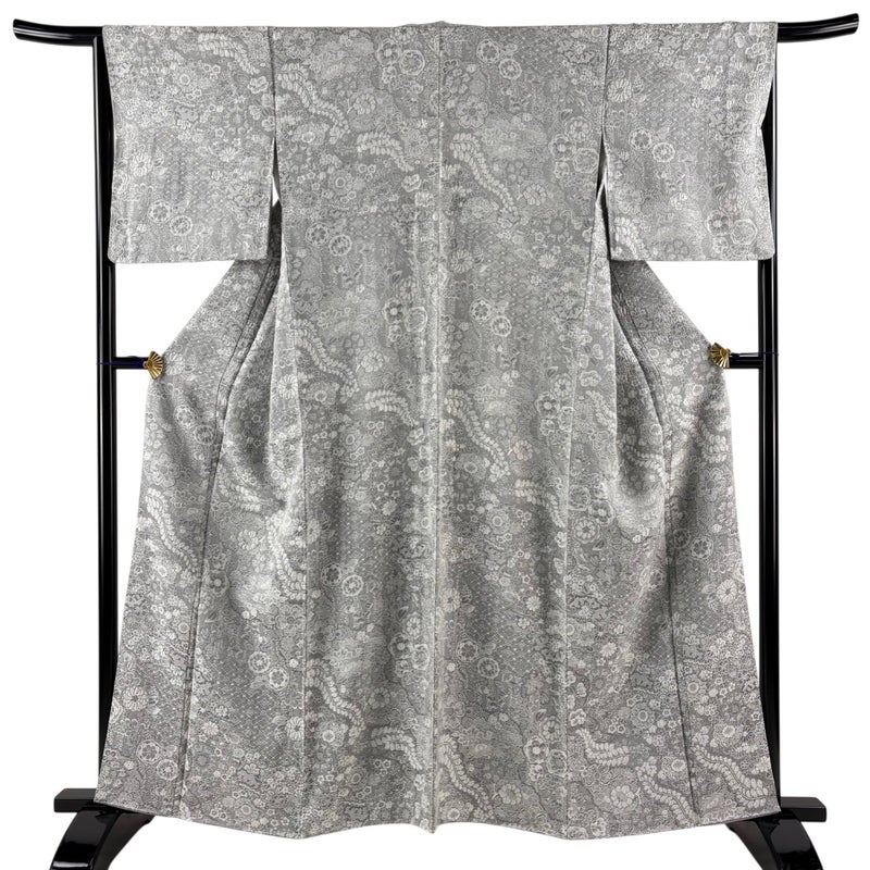 【小紋】 灰色系 灰色 逸品 A 約160cm~約169cm 裄丈66cm (M)size 袖丈48cm 30000- 美品 五万以上