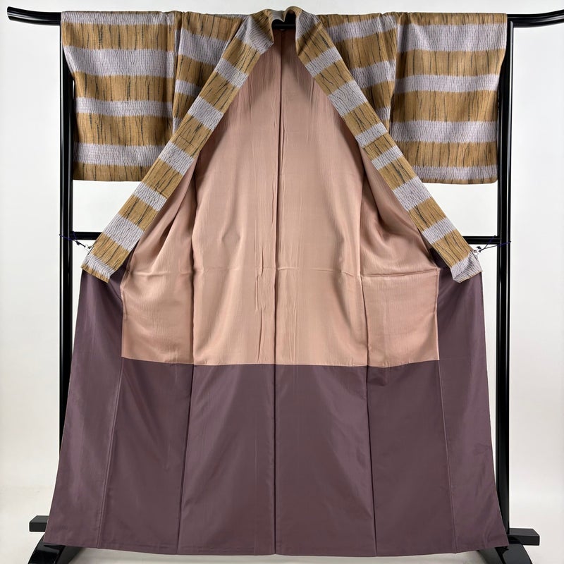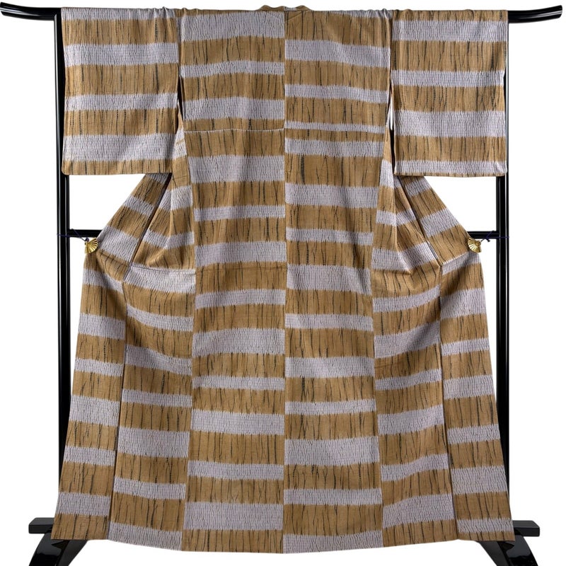【着物ランク】秀品 【素材】正絹 【身丈】約164.5cm 【裄丈】約67cm 【袖丈】約51cm 【袖幅】約34cm 【前幅】約22cm 【後幅】約29cm 【サイズ】M 【着物仕立て】袷 【着用時期】10~5月 【状態ランク】ランクC 【着物着用シーン】気軽なパーティー、観劇、食事会、正月、気軽なお茶会、街着