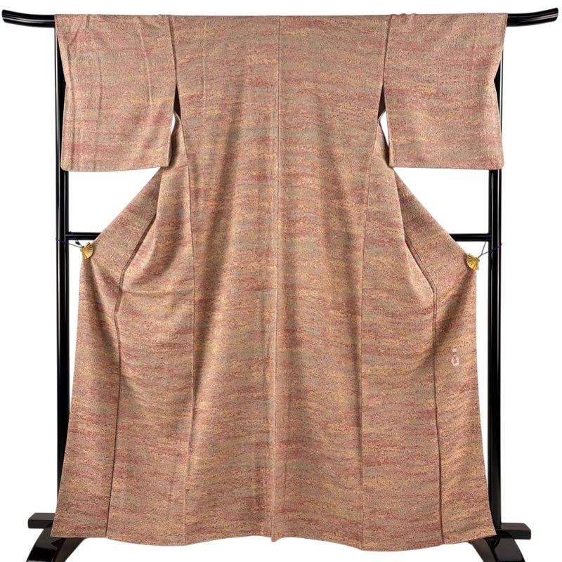 【着物ランク】秀品 【素材】正絹 【身丈】約162cm 【裄丈】約67cm 【袖丈】約48.5cm 【袖幅】約34.5cm 【前幅】約25cm 【後幅】約31cm 【サイズ】M 【着物仕立て】袷 【着用時期】10~5月 【状態ランク】ランクA 【着物着用シーン】気軽なパーティー、観劇、食事会、正月、気軽なお茶会、街着