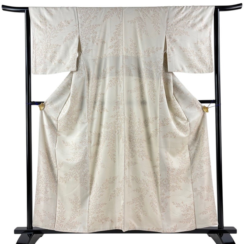 【着物ランク】秀品 【素材】正絹 【身丈】約159cm 【裄丈】約63cm 【袖丈】約49cm 【袖幅】約32.5cm 【前幅】約24cm 【後幅】約29.5cm 【サイズ】S 【着物仕立て】袷 【着用時期】10~5月 【状態ランク】ランクA 【着物着用シーン】気軽なパーティー、観劇、食事会、正月、気軽なお茶会、街着