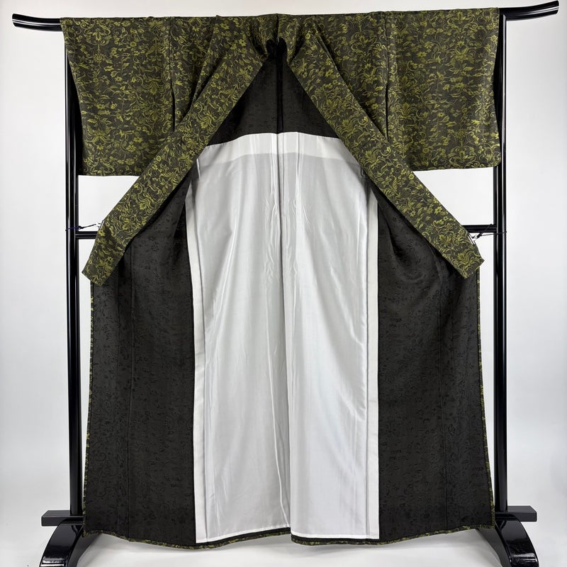 【小紋】 灰色系 灰緑 秀品 A 約160cm~約169cm 裄丈67cm-68cm (L)size 袖丈49cm 9990-29990 美品 二万以下