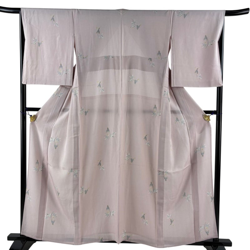 【着物ランク】秀品 【素材】正絹 【身丈】約158cm 【裄丈】約66cm 【袖丈】約51.5cm 【袖幅】約36cm 【前幅】約27cm 【後幅】約31cm 【サイズ】M 【着物仕立て】薄物 【着用時期】7~8月 【状態ランク】ランクC 【着物着用シーン】気軽なパーティー、観劇、食事会、正月、気軽なお茶会、街着