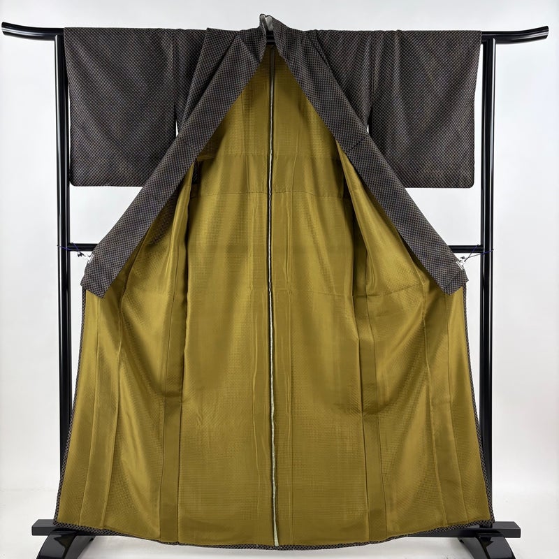 【小紋】 茶系 焦茶色 秀品 B 約160cm~約169cm 裄丈63cm-64cm (M)size 袖丈49cm 9990-29990 二万以下