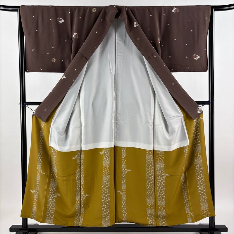 【小紋】 茶系 茶色 秀品 B 約150cm~約159cm 裄丈63cm-64cm (M)size 袖丈46cm以下 4000-7980 二万以下