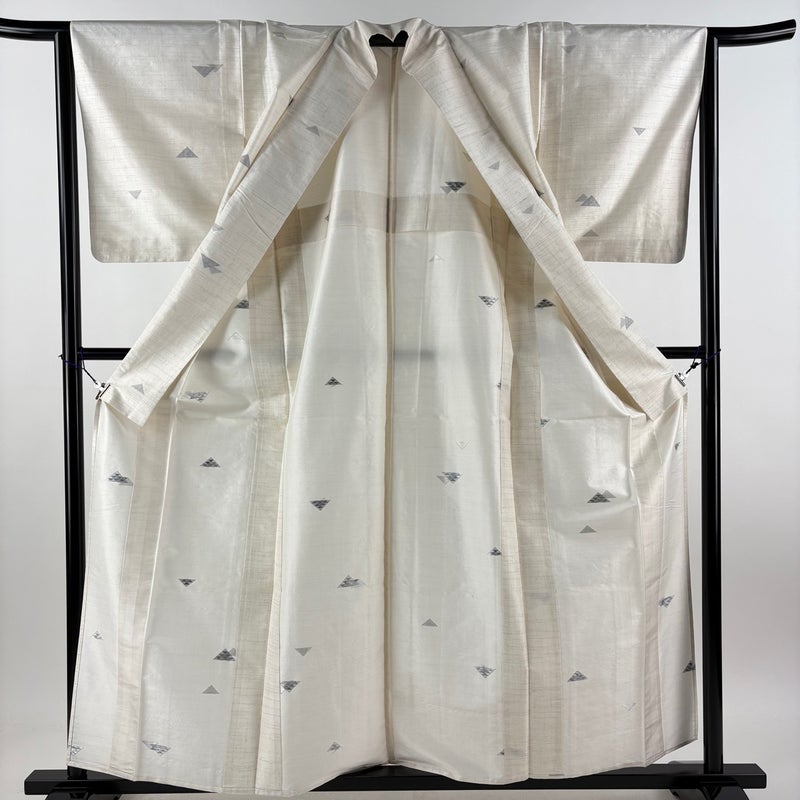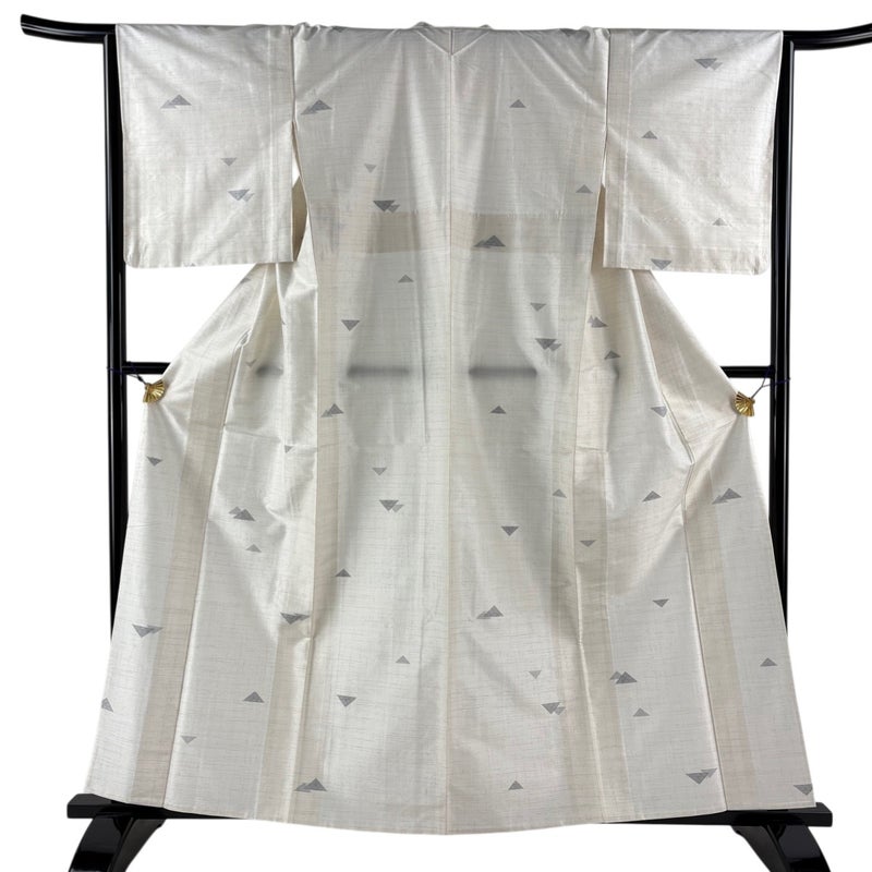 【着物ランク】秀品 【素材】正絹 【身丈】約160cm 【裄丈】約65.5cm 【袖丈】約49cm 【袖幅】約33cm 【前幅】約24.5cm 【後幅】約30.5cm 【サイズ】M 【着物仕立て】単衣 【着用時期】6/9月 【状態ランク】ランクA 【着物着用シーン】気軽なパーティー、観劇、食事会、正月、気軽なお茶会、街着