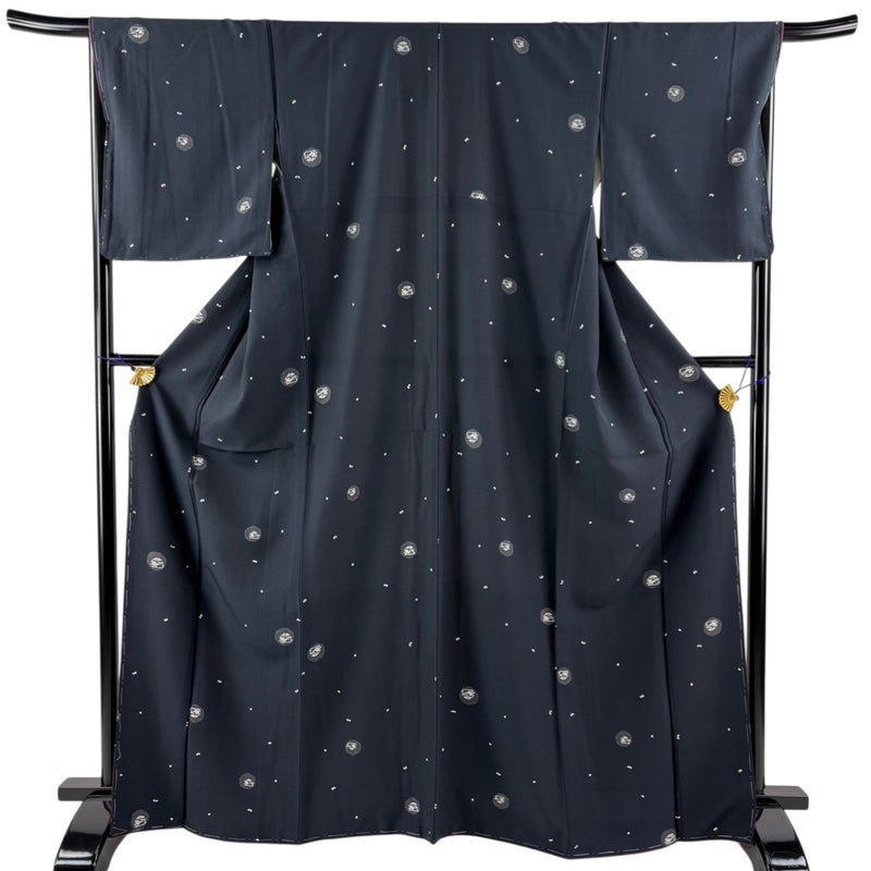 【小紋】 青系 青黒 秀品 A 約160cm~約169cm 裄丈67cm-68cm (L)size 袖丈48cm 7990-9980 美品 二万以下