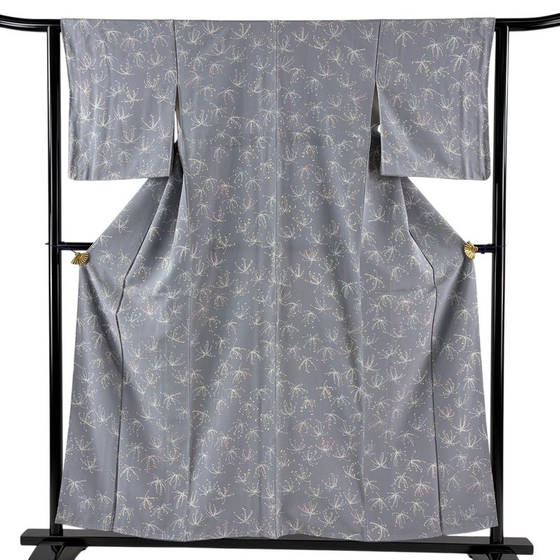 【小紋】 灰色系 灰紫 秀品 A 約150cm~約159cm 裄丈62cm以下 (S)size 袖丈48cm 7990-9980 美品 二万以下