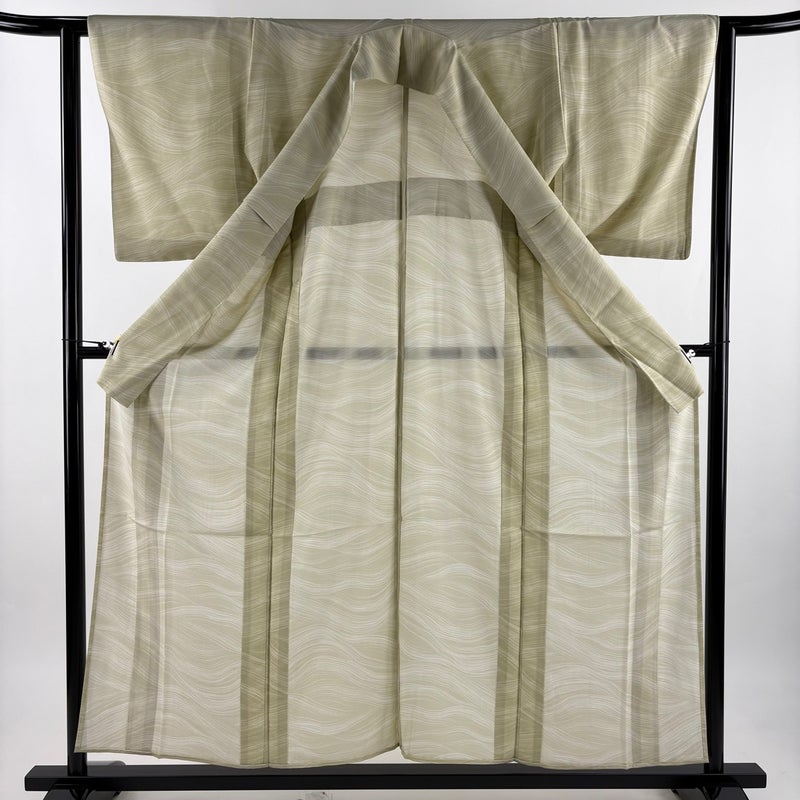 【着物ランク】秀品 【素材】正絹 【身丈】約155.5cm 【裄丈】約62cm 【袖丈】約49.5cm 【袖幅】約32.5cm 【前幅】約24.5cm 【後幅】約29cm 【サイズ】S 【着物仕立て】薄物 【着用時期】7~8月 【状態ランク】ランクA 【着物着用シーン】気軽なパーティー、観劇、食事会、正月、気軽なお茶会、街着