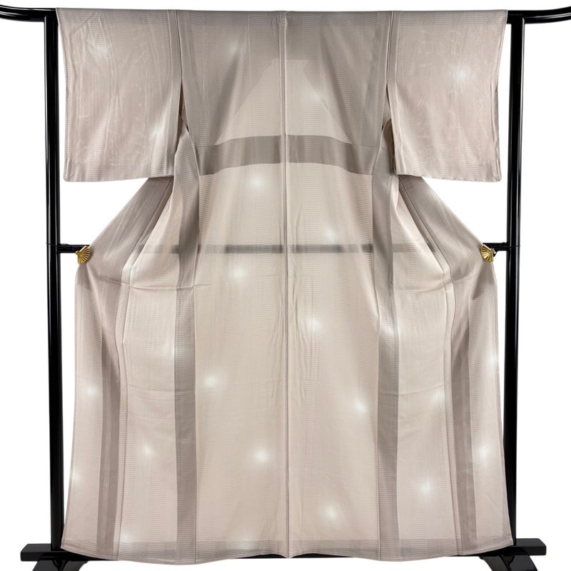 【着物ランク】秀品 【素材】正絹 【身丈】約160cm 【裄丈】約62.5cm 【袖丈】約50cm 【袖幅】約32.5cm 【前幅】約24cm 【後幅】約29cm 【サイズ】S 【着物仕立て】薄物 【着用時期】7~8月 【状態ランク】ランクA 【着物着用シーン】気軽なパーティー、観劇、食事会、正月、気軽なお茶会、街着