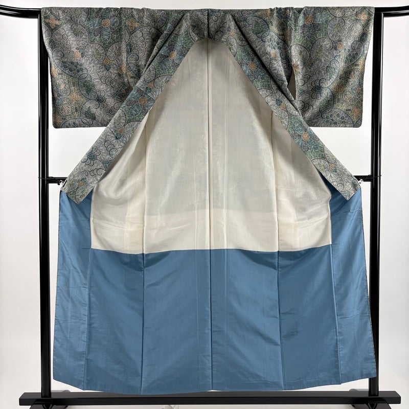 【着物ランク】秀品 【素材】正絹 【身丈】約155cm 【裄丈】約65cm 【袖丈】約47cm 【袖幅】約33.5cm 【前幅】約23cm 【後幅】約28.5cm 【サイズ】M 【着物仕立て】袷 【着用時期】10~5月 【状態ランク】ランクB 【着物着用シーン】気軽なパーティー、観劇、食事会、正月、気軽なお茶会、街着
