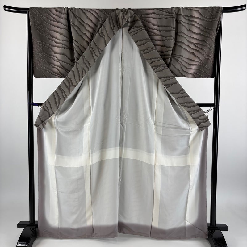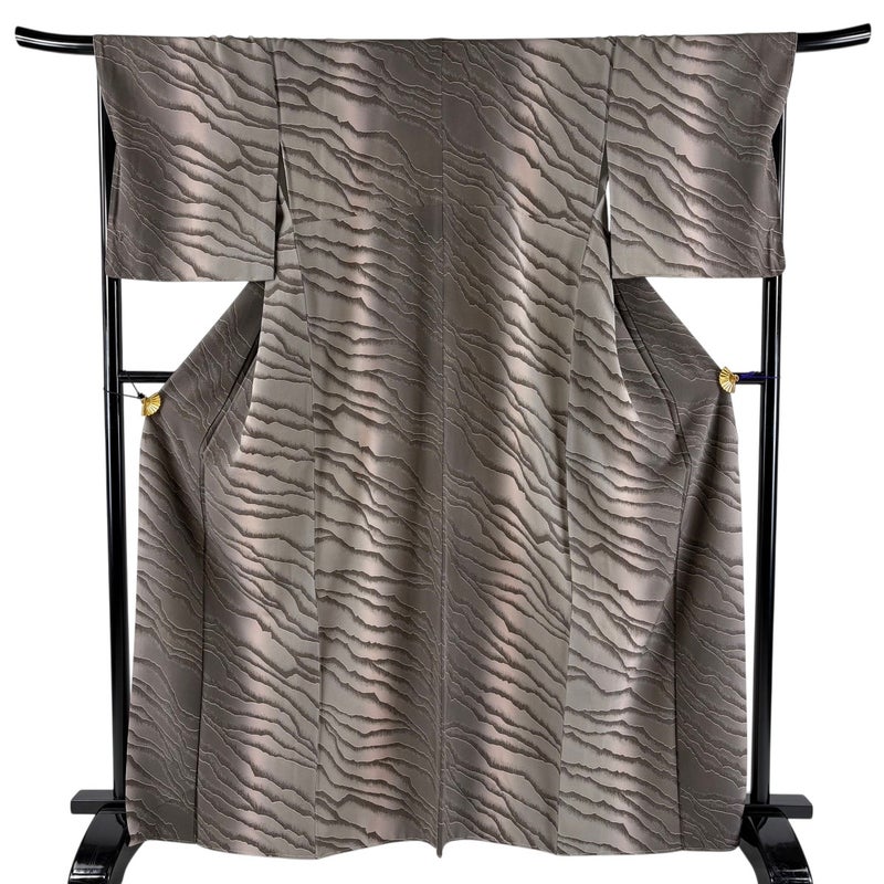 【小紋】 灰色系 灰茶 秀品 A 約160cm~約169cm 裄丈67cm-68cm (L)size 袖丈49cm 7990-9980 美品 二万以下