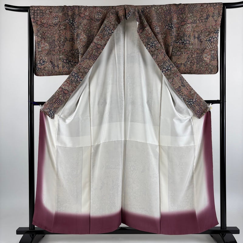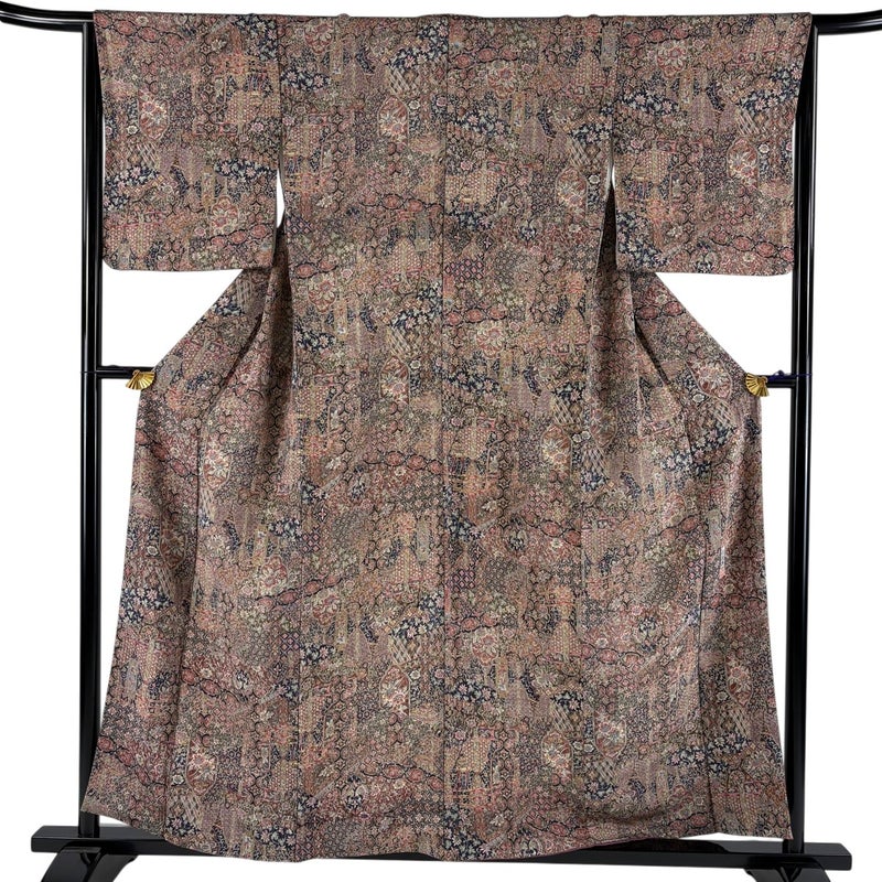 【小紋】 灰色系 灰紫 秀品 A 約150cm~約159cm 裄丈65cm (M)size 袖丈49cm 7990-9980 美品 二万以下