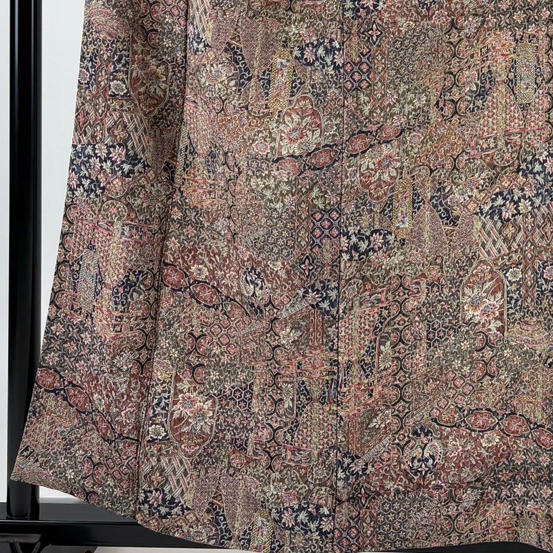 【着物ランク】秀品 【素材】正絹 【身丈】約157cm 【裄丈】約65.5cm 【袖丈】約49cm 【袖幅】約33.5cm 【前幅】約26cm 【後幅】約30cm 【サイズ】M 【着物仕立て】袷 【着用時期】10~5月 【状態ランク】ランクA 【作家名】二代目 更甚 【着物着用シーン】気軽なパーティー、観劇、食事会、正月、気軽なお茶会、街着