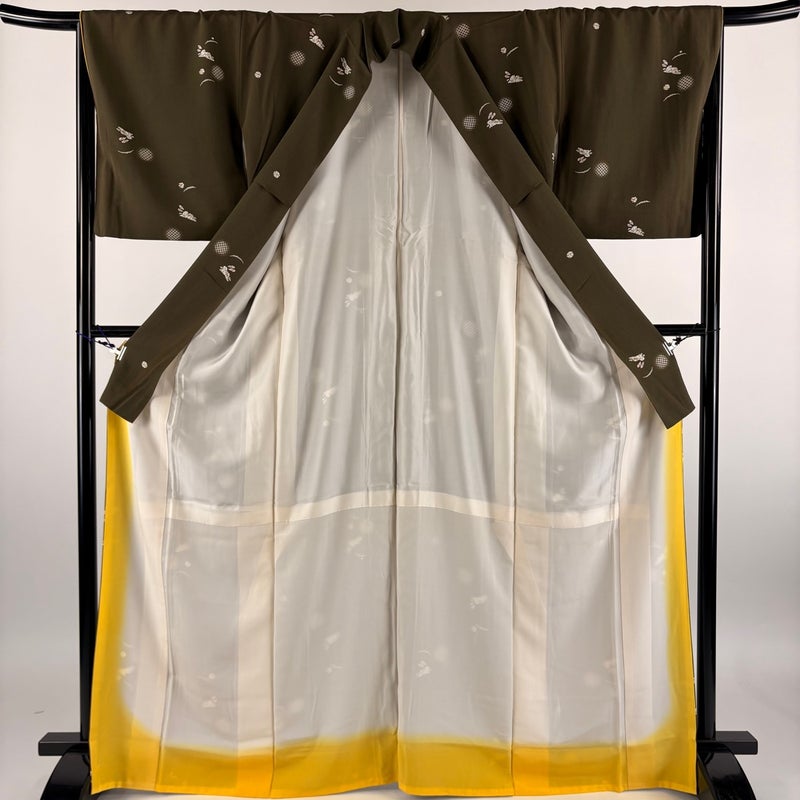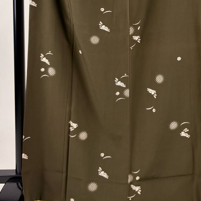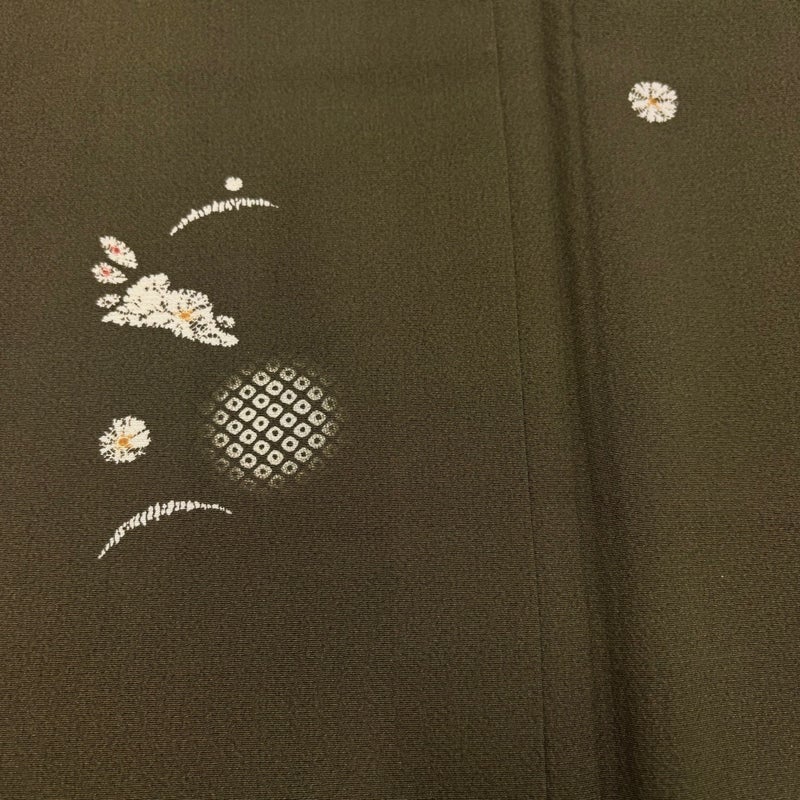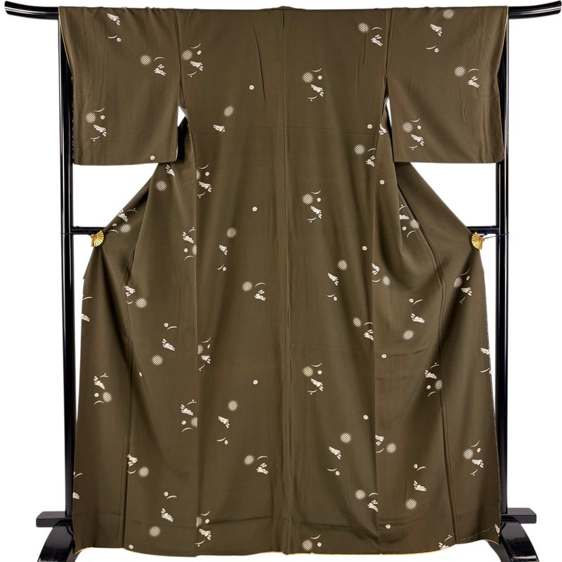 【小紋】 茶系 茶緑色 秀品 C 約160cm~約169cm 裄丈66cm (M)size 袖丈48cm 4000-7980 二万以下