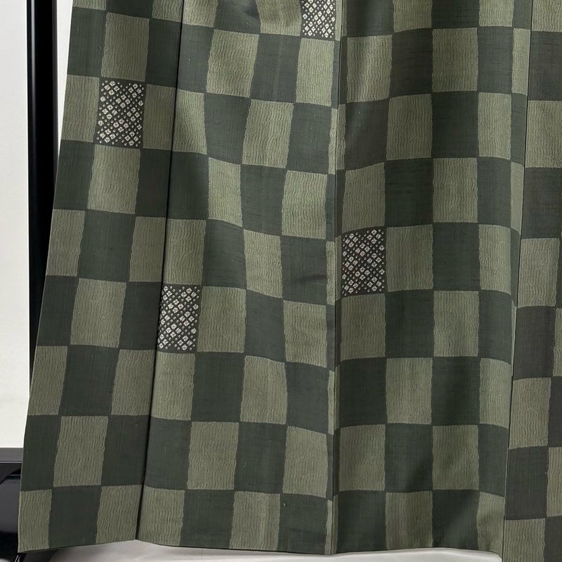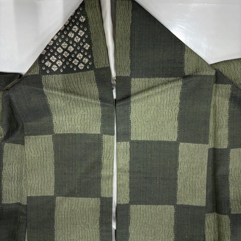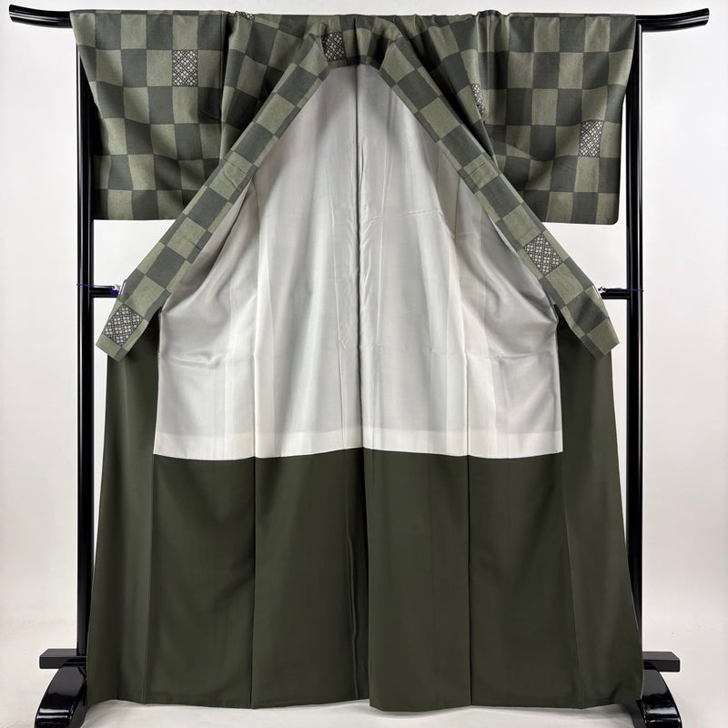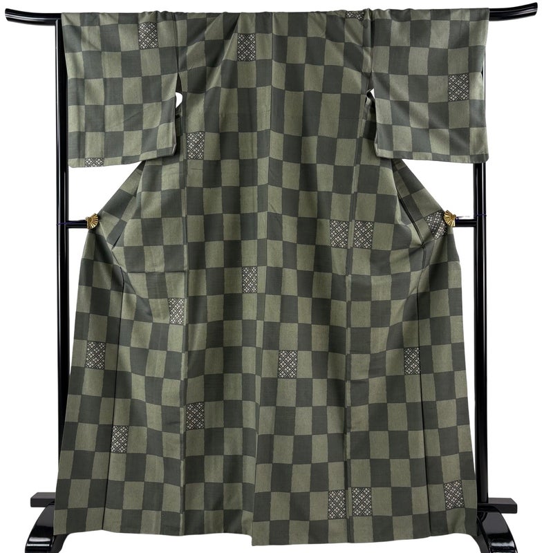 【小紋】 緑系 よもぎ色 秀品 A 約160cm~約169cm 裄丈67cm-68cm (L)size 袖丈50cm-60cm 7990-9980 美品 二万以下