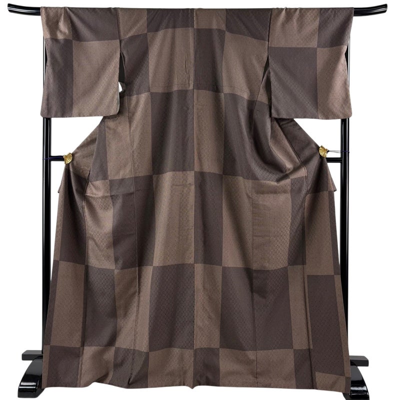 【小紋】 茶系 茶色 秀品 A 約170cm~約179cm 裄丈69cm以上 (L)size 袖丈50cm-60cm 7990-9980 美品 二万以下