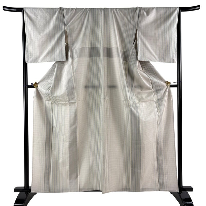 【着物ランク】秀品 【素材】正絹 【身丈】約161cm 【裄丈】約67.5cm 【袖丈】約49.5cm 【袖幅】約34.5cm 【前幅】約24.5cm 【後幅】約28.5cm 【サイズ】L 【着物仕立て】単衣 【着用時期】6/9月 【状態ランク】ランクA 【着物着用シーン】気軽なパーティー、観劇、食事会、正月、気軽なお茶会、街着