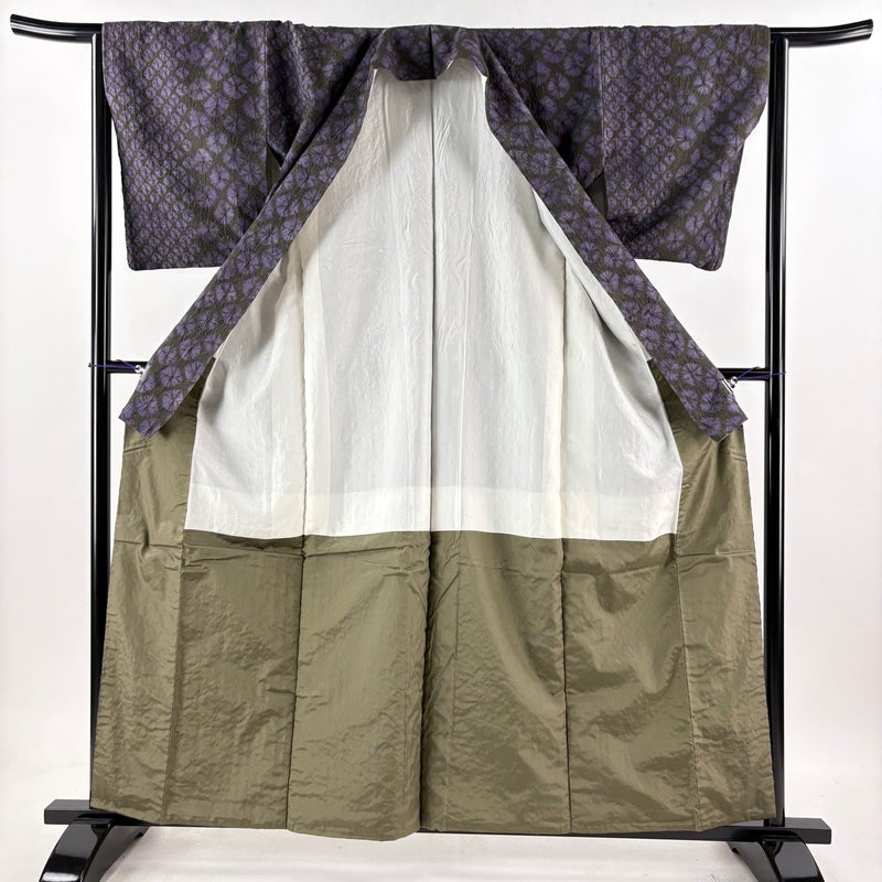 【小紋】 茶系 茶緑色 秀品 B 約160cm~約169cm 裄丈63cm-64cm (S)size 袖丈47cm 4000-7980 二万以下