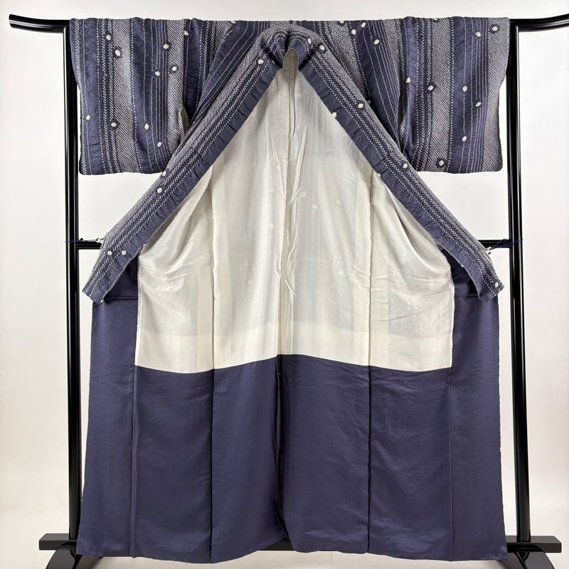 【小紋】 紫系 青紫 秀品 A 約160cm~約169cm 裄丈63cm-64cm (S)size 袖丈46cm以下 7990-9980 美品 二万以下
