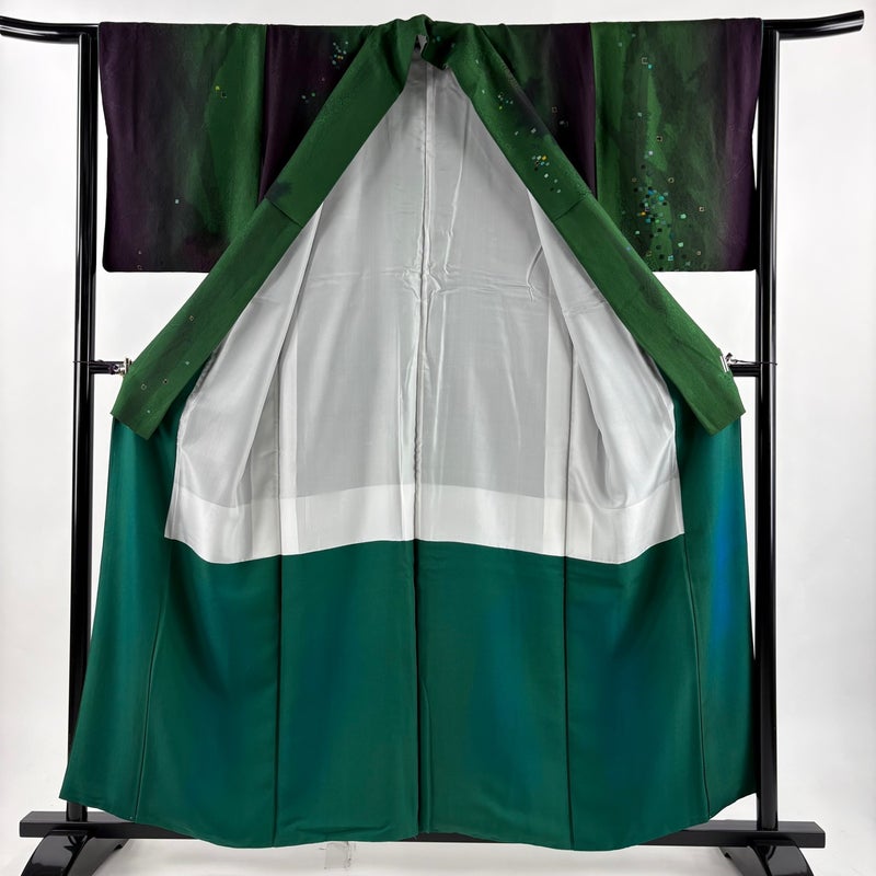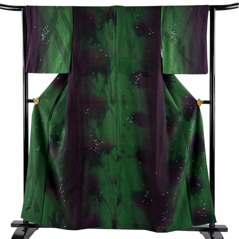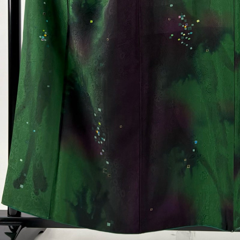 【小紋】 緑系 緑 秀品 B 約150cm~約159cm 裄丈63cm-64cm (M)size 袖丈48cm 4000-7980 二万以下