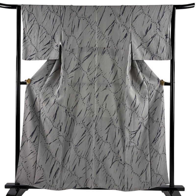 【小紋】 灰色系 灰色 秀品 A 約150cm~約159cm 裄丈63cm-64cm (M)size 袖丈48cm 7990-9980 美品 二万以下