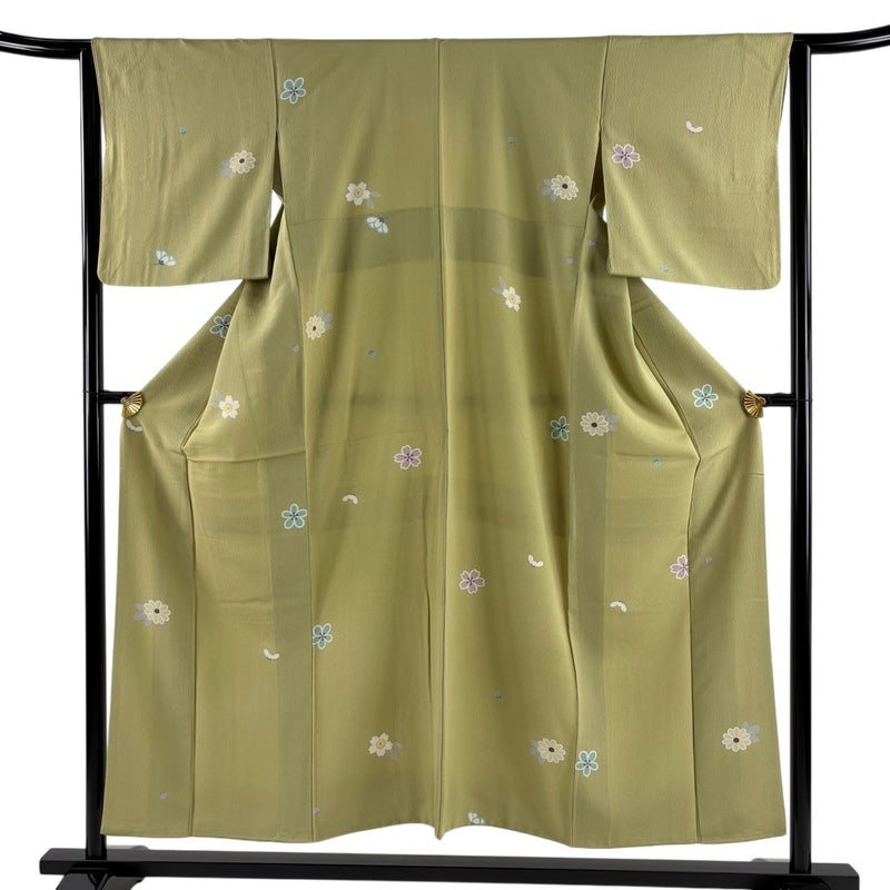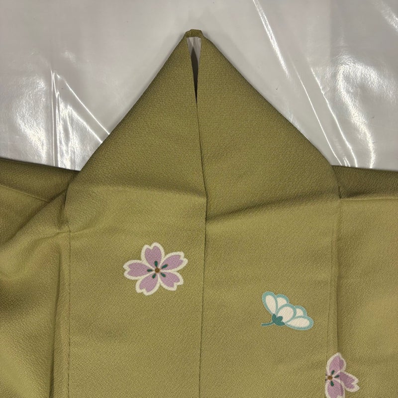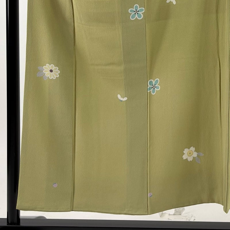 【小紋】 緑系 鶯色 秀品 B 約150cm~約159cm 裄丈63cm-64cm (S)size 袖丈47cm 4000-7980 二万以下
