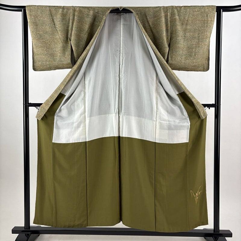 【小紋】 茶系 茶緑色 秀品 A 約150cm~約159cm 裄丈62cm以下 (S)size 袖丈46cm以下 7990-9980 美品 二万以下