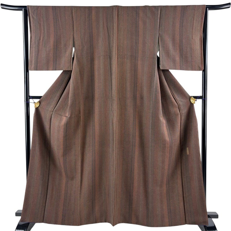 【小紋】 茶系 焦茶色 名品 C 約160cm~約169cm 裄丈63cm-64cm (M)size 袖丈49cm 9990-29990 二万以下