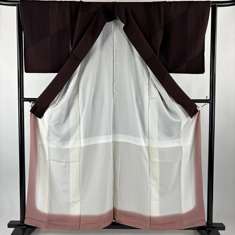 【小紋】 茶系 茶紫 秀品 A 約150cm~約159cm 裄丈65cm (M)size 袖丈49cm 7990-9980 美品 二万以下